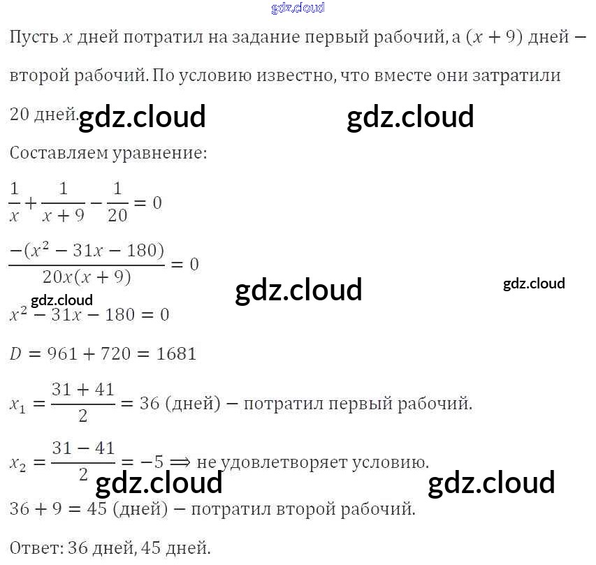 §24. Рациональные уравнения как математические модели реальных ситуаций Ответы к Главе 3. Квадратные уравнения по Алгебре 8 класс Учебник Мерзляк Алгоритм успеха Вентана-граф