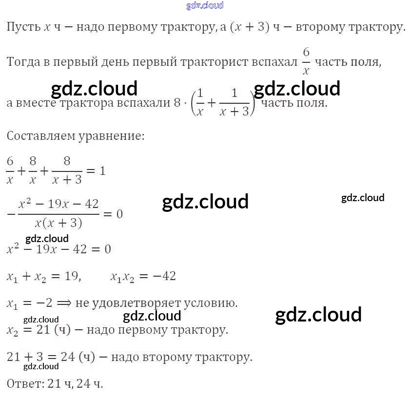 §24. Рациональные уравнения как математические модели реальных ситуаций Ответы к Главе 3. Квадратные уравнения по Алгебре 8 класс Учебник Мерзляк Алгоритм успеха Вентана-граф
