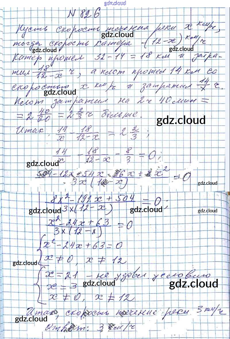 Ответ на задание 826 Учебник Алгебра за 8 (восьмой) класс Мерзляк, Полонский, Якир Алгоритм успеха 2016