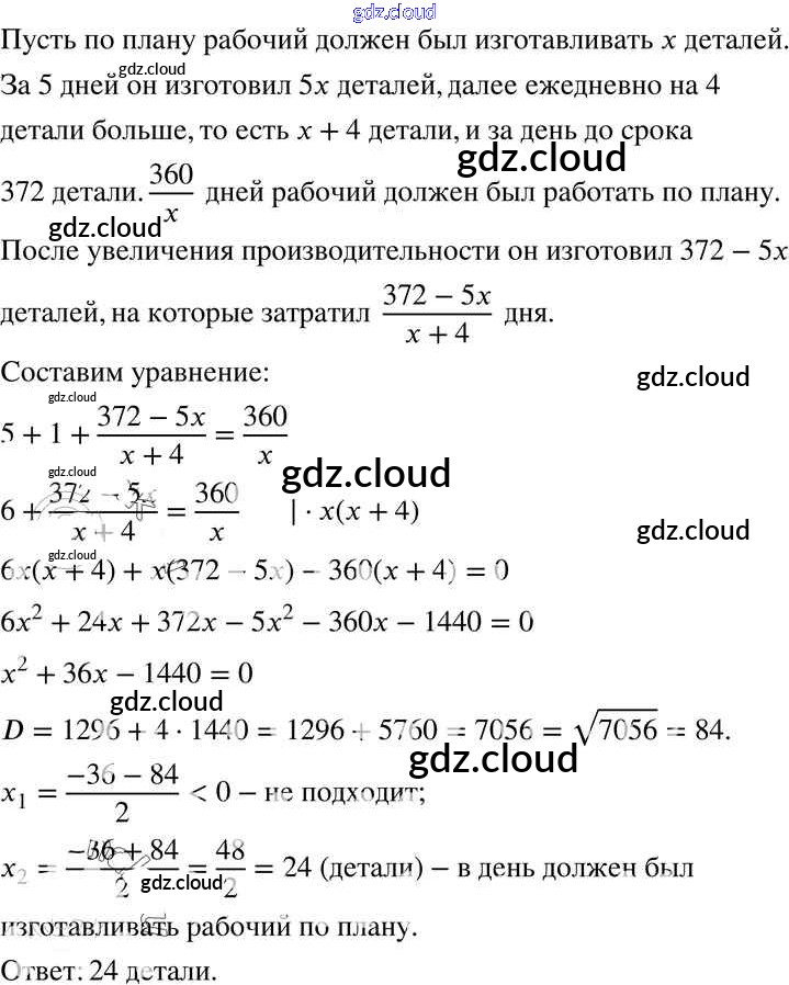 §24. Рациональные уравнения как математические модели реальных ситуаций Ответы к Главе 3. Квадратные уравнения по Алгебре 8 класс Учебник Мерзляк Алгоритм успеха Вентана-граф