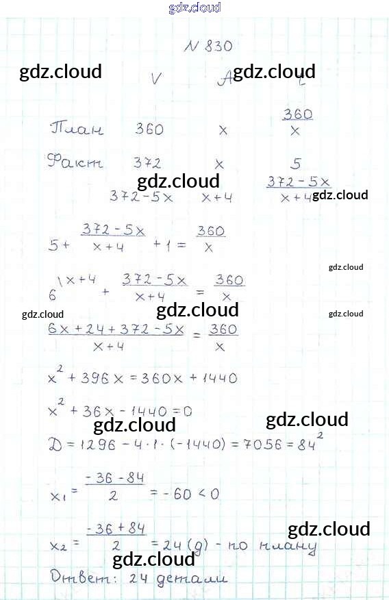 Ответ на задание 830 Учебник Алгебра за 8 (восьмой) класс Мерзляк, Полонский, Якир Алгоритм успеха 2016
