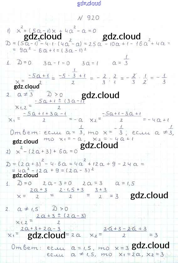 Ответ на задание 920 Учебник Алгебра за 8 (восьмой) класс Мерзляк, Полонский, Якир Алгоритм успеха 2016