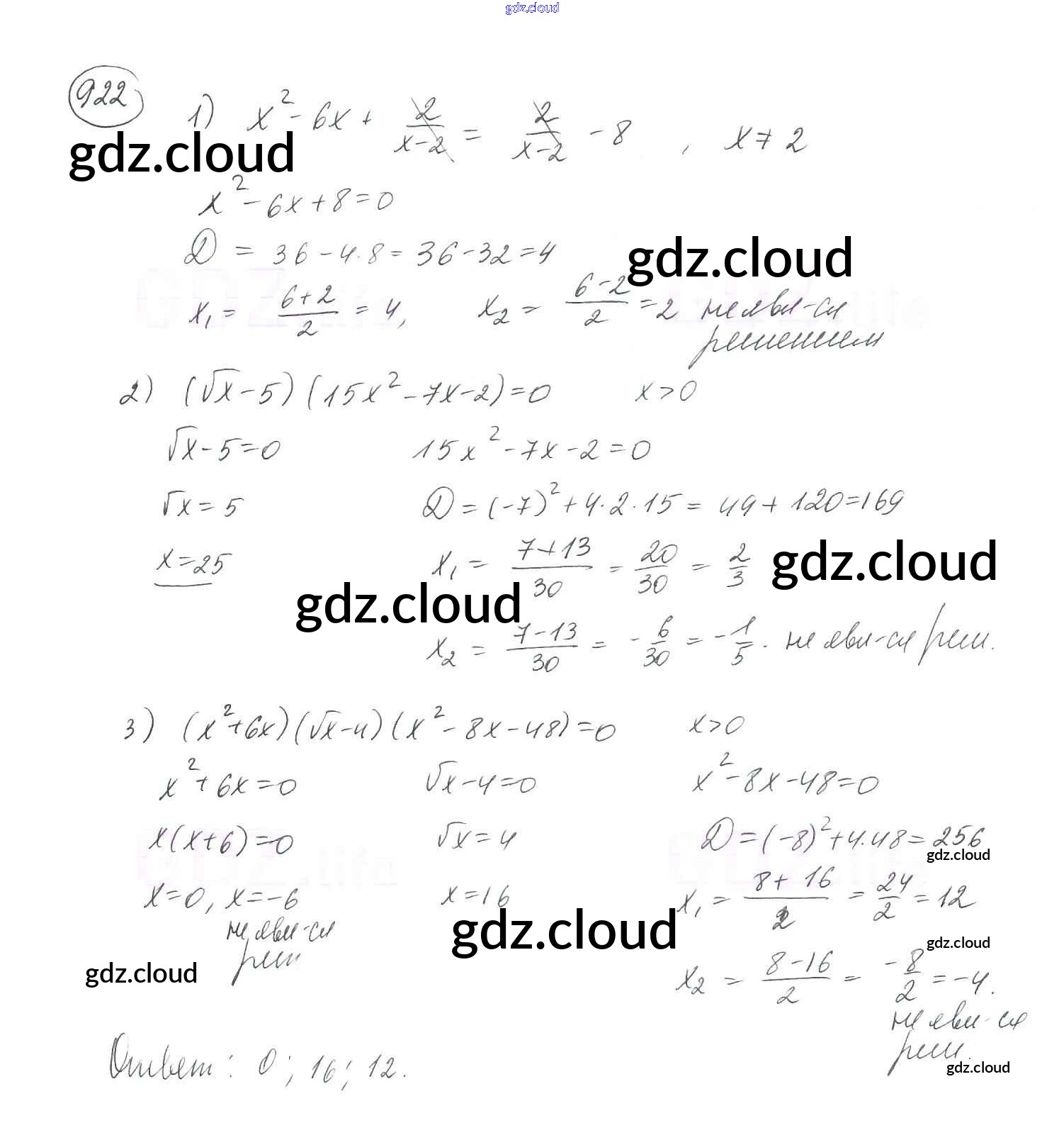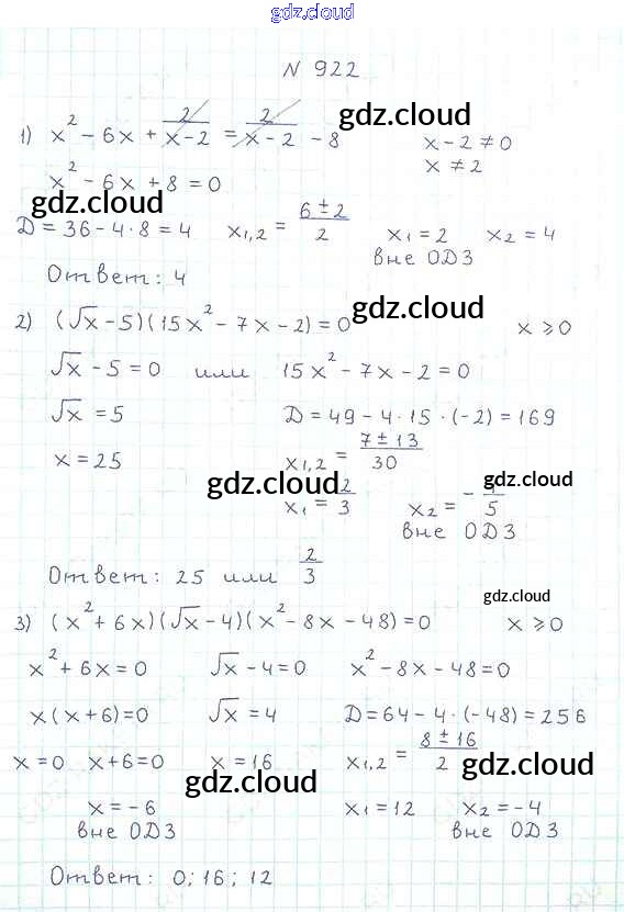 Ответ на задание 922 Учебник Алгебра за 8 (восьмой) класс Мерзляк, Полонский, Якир Алгоритм успеха 2016