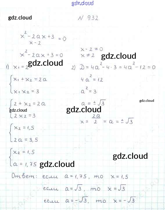 Ответ на задание 932 Учебник Алгебра за 8 (восьмой) класс Мерзляк, Полонский, Якир Алгоритм успеха 2016