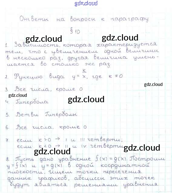 Ответы к Вопросам к параграфу по Алгебре 8 класс Учебник Мерзляк Алгоритм успеха Вентана-граф