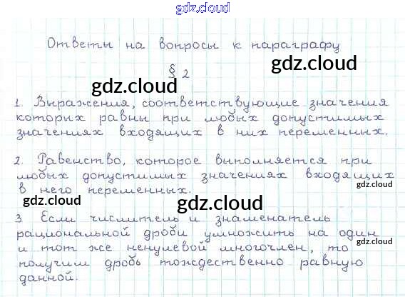 Ответы к Вопросам к параграфу по Алгебре 8 класс Учебник Мерзляк Алгоритм успеха Вентана-граф