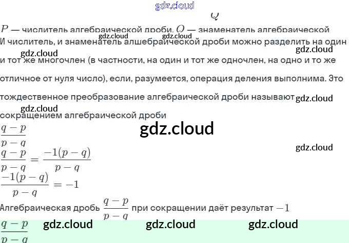 Ответы. §2. Основное свойство алгебраической дроби по Алгебре 8 класс Учебник Мордкович Базовый уровень Мнемозина