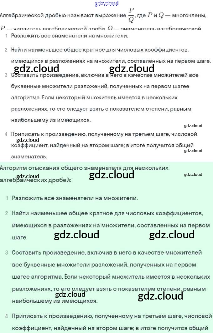Ответы. §2. Основное свойство алгебраической дроби по Алгебре 8 класс Учебник Мордкович Базовый уровень Мнемозина