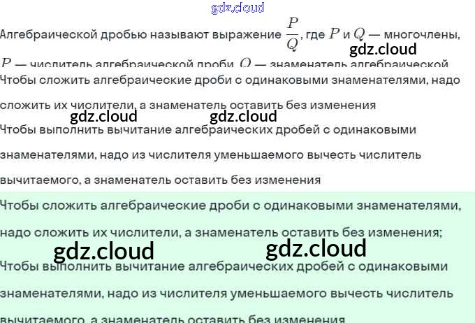 Ответы. §3. Сложение и вычитание алгебраических дробей с одинаковыми знаменателями по Алгебре 8 класс Учебник Мордкович Базовый уровень Мнемозина