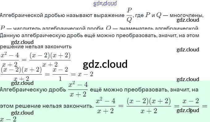 Ответы. §3. Сложение и вычитание алгебраических дробей с одинаковыми знаменателями по Алгебре 8 класс Учебник Мордкович Базовый уровень Мнемозина