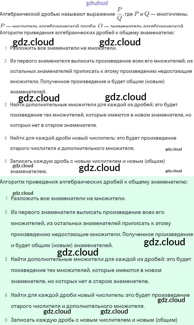 Ответы. §4. Сложение и вычитание алгебраических дробей с разными знаменателями по Алгебре 8 класс Учебник Мордкович Базовый уровень Мнемозина