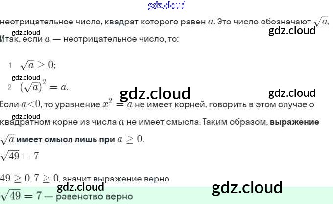 Ответы. §11. Понятие квадратного корня из неотрицательного числа по Алгебре 8 класс Учебник Мордкович Базовый уровень Мнемозина