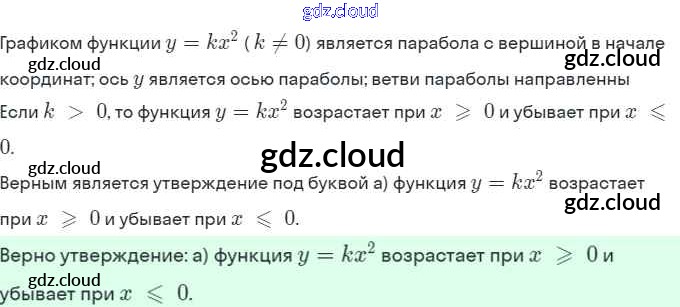 Ответы. §19. Функция y=kx^2, её свойства и график по Алгебре 8 класс Учебник Мордкович Базовый уровень Мнемозина