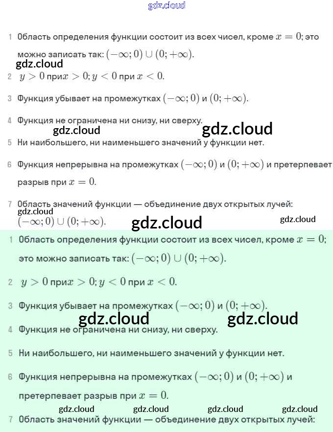 Ответы. §20. Функция y=k/x, её свойства и график по Алгебре 8 класс Учебник Мордкович Базовый уровень Мнемозина