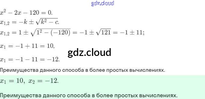 Ответы. §31. Ещё одна формула корней квадратного уравнения по Алгебре 8 класс Учебник Мордкович Базовый уровень Мнемозина