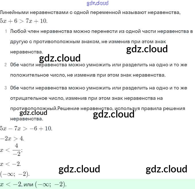 Ответы. §36. Решение линейных неравенств по Алгебре 8 класс Учебник Мордкович Базовый уровень Мнемозина