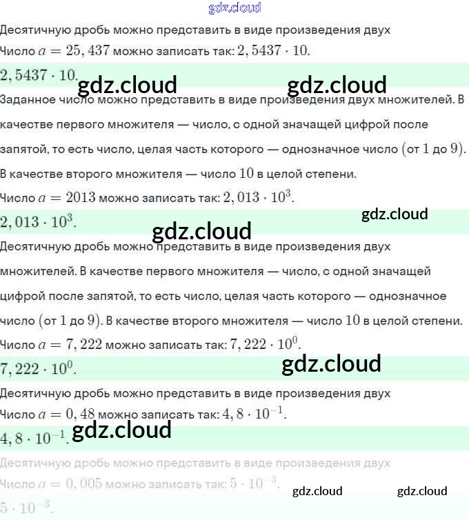 Ответы. §39. Стандартный вид числа по Алгебре 8 класс Учебник Мордкович Базовый уровень Мнемозина