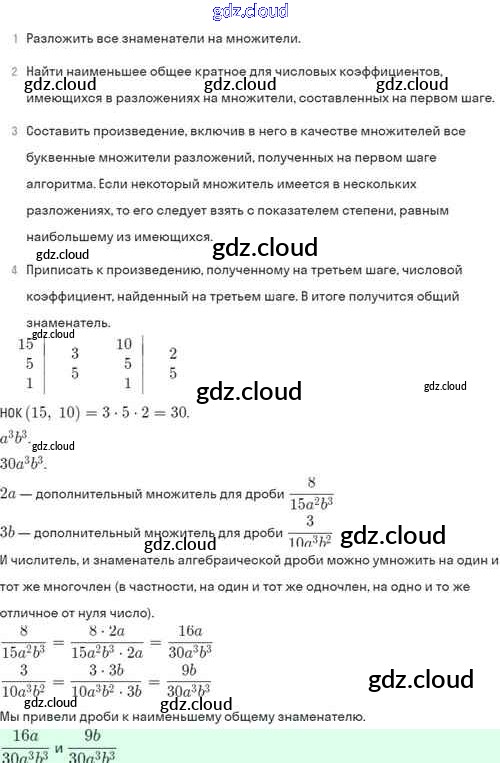Ответы. §2. Основное свойство алгебраической дроби по Алгебре 8 класс Задачник Мордкович Базовый уровень Часть 2 Мнемозина