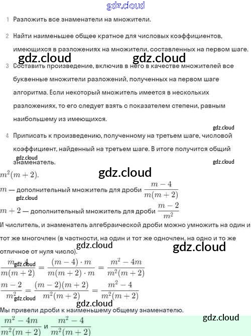 Ответы. §2. Основное свойство алгебраической дроби по Алгебре 8 класс Задачник Мордкович Базовый уровень Часть 2 Мнемозина