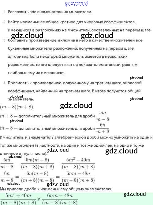 Ответы. §2. Основное свойство алгебраической дроби по Алгебре 8 класс Задачник Мордкович Базовый уровень Часть 2 Мнемозина