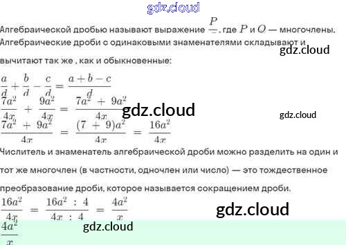 Ответы. §3. Сложение и вычитание алгебраических дробей с одинаковыми знаменателями по Алгебре 8 класс Задачник Мордкович Базовый уровень Часть 2 Мнемозина