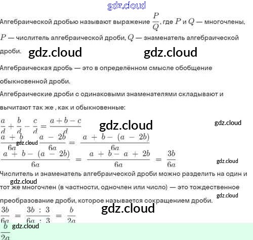 Ответы. §3. Сложение и вычитание алгебраических дробей с одинаковыми знаменателями по Алгебре 8 класс Задачник Мордкович Базовый уровень Часть 2 Мнемозина