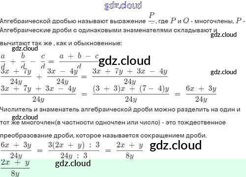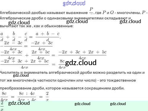 Ответы. §3. Сложение и вычитание алгебраических дробей с одинаковыми знаменателями по Алгебре 8 класс Задачник Мордкович Базовый уровень Часть 2 Мнемозина