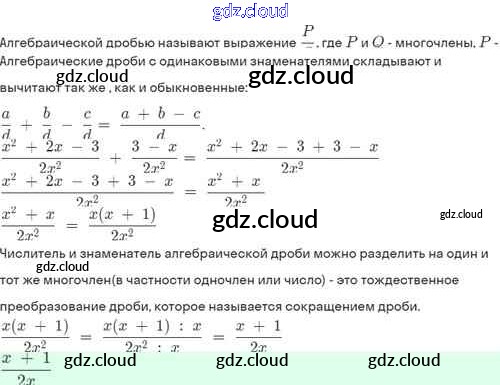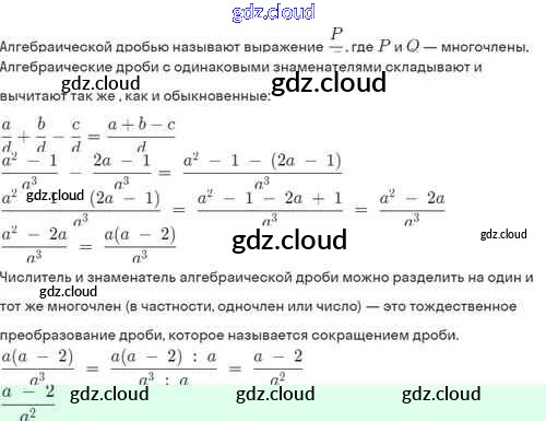 Ответы. §3. Сложение и вычитание алгебраических дробей с одинаковыми знаменателями по Алгебре 8 класс Задачник Мордкович Базовый уровень Часть 2 Мнемозина