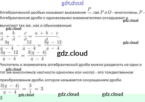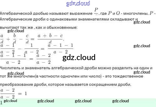 Ответы. §3. Сложение и вычитание алгебраических дробей с одинаковыми знаменателями по Алгебре 8 класс Задачник Мордкович Базовый уровень Часть 2 Мнемозина