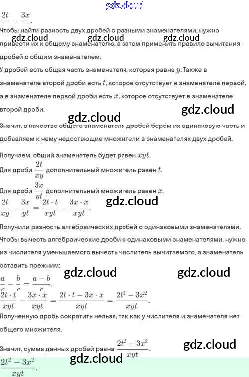 Ответы. §4. Сложение и вычитание алгебраических дробей с разными знаменателями по Алгебре 8 класс Задачник Мордкович Базовый уровень Часть 2 Мнемозина