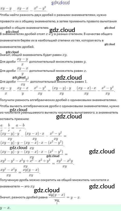 Ответы. §4. Сложение и вычитание алгебраических дробей с разными знаменателями по Алгебре 8 класс Задачник Мордкович Базовый уровень Часть 2 Мнемозина
