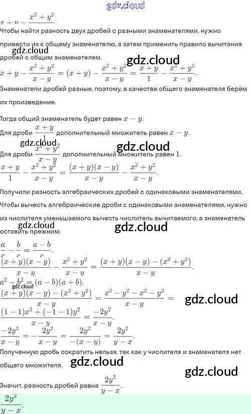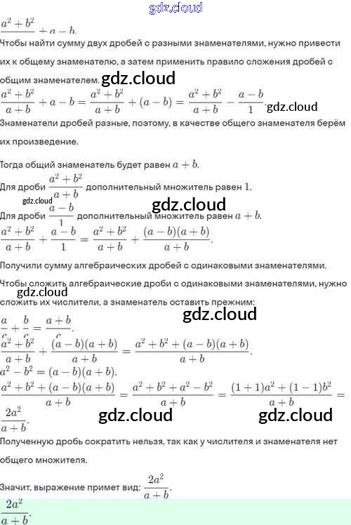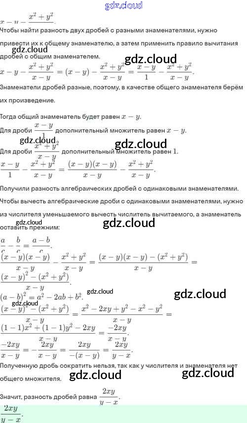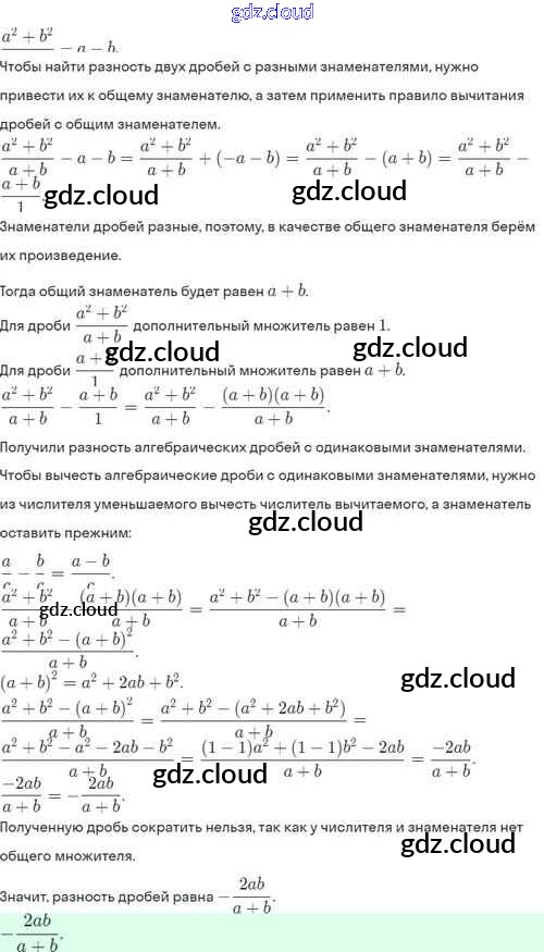 Ответы. §4. Сложение и вычитание алгебраических дробей с разными знаменателями по Алгебре 8 класс Задачник Мордкович Базовый уровень Часть 2 Мнемозина