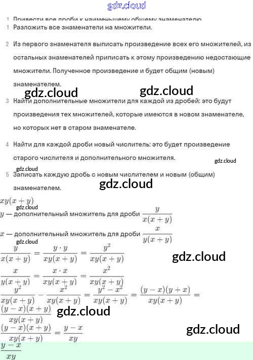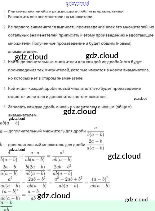 Ответы. §4. Сложение и вычитание алгебраических дробей с разными знаменателями по Алгебре 8 класс Задачник Мордкович Базовый уровень Часть 2 Мнемозина