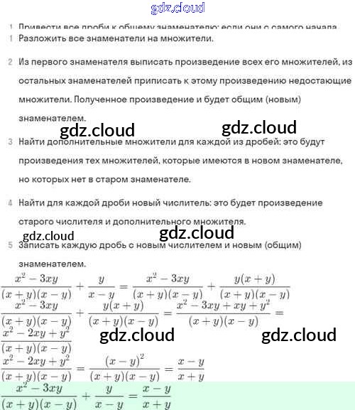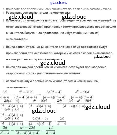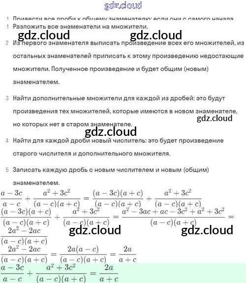 Ответы. §4. Сложение и вычитание алгебраических дробей с разными знаменателями по Алгебре 8 класс Задачник Мордкович Базовый уровень Часть 2 Мнемозина