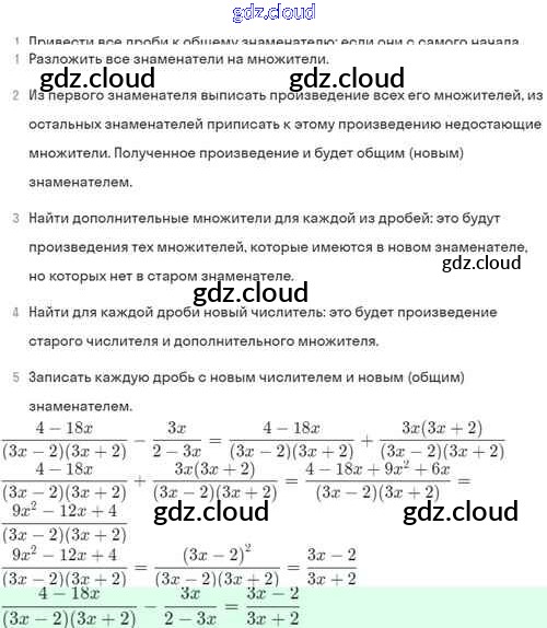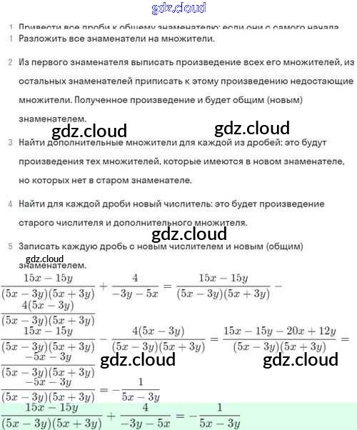 Ответы. §4. Сложение и вычитание алгебраических дробей с разными знаменателями по Алгебре 8 класс Задачник Мордкович Базовый уровень Часть 2 Мнемозина