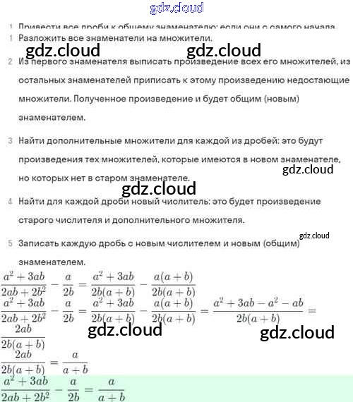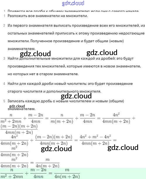 Ответы. §4. Сложение и вычитание алгебраических дробей с разными знаменателями по Алгебре 8 класс Задачник Мордкович Базовый уровень Часть 2 Мнемозина