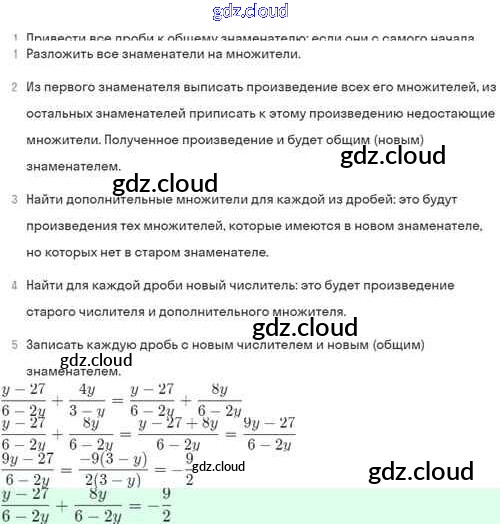 Ответы. §4. Сложение и вычитание алгебраических дробей с разными знаменателями по Алгебре 8 класс Задачник Мордкович Базовый уровень Часть 2 Мнемозина