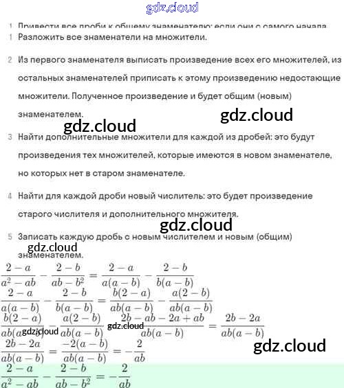 Ответы. §4. Сложение и вычитание алгебраических дробей с разными знаменателями по Алгебре 8 класс Задачник Мордкович Базовый уровень Часть 2 Мнемозина