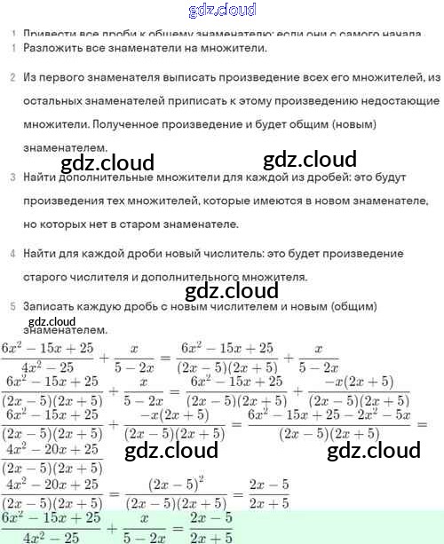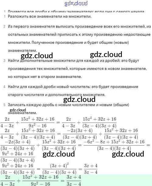 Ответы. §4. Сложение и вычитание алгебраических дробей с разными знаменателями по Алгебре 8 класс Задачник Мордкович Базовый уровень Часть 2 Мнемозина