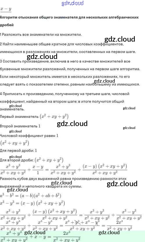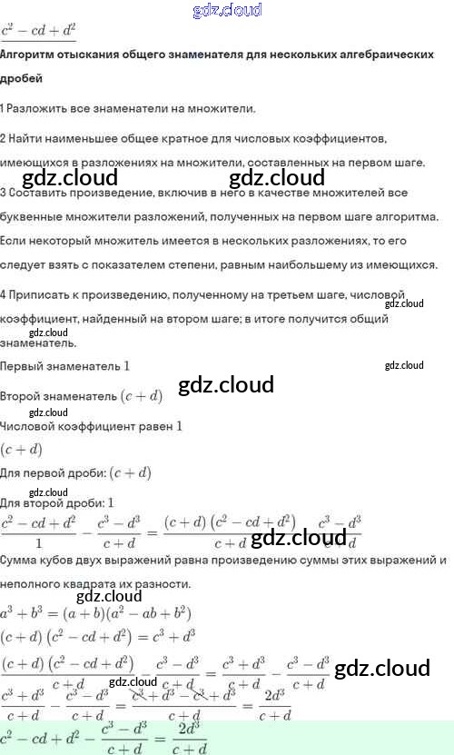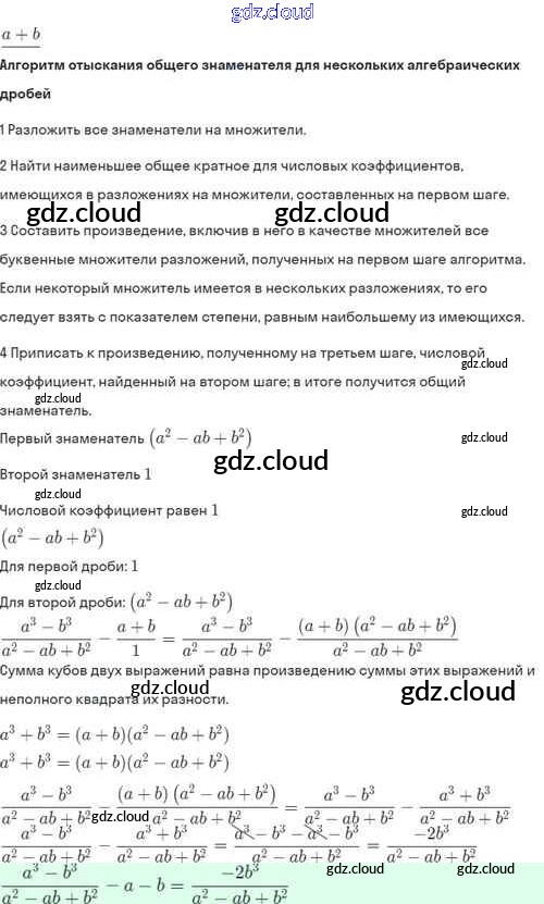 Ответы. §4. Сложение и вычитание алгебраических дробей с разными знаменателями по Алгебре 8 класс Задачник Мордкович Базовый уровень Часть 2 Мнемозина