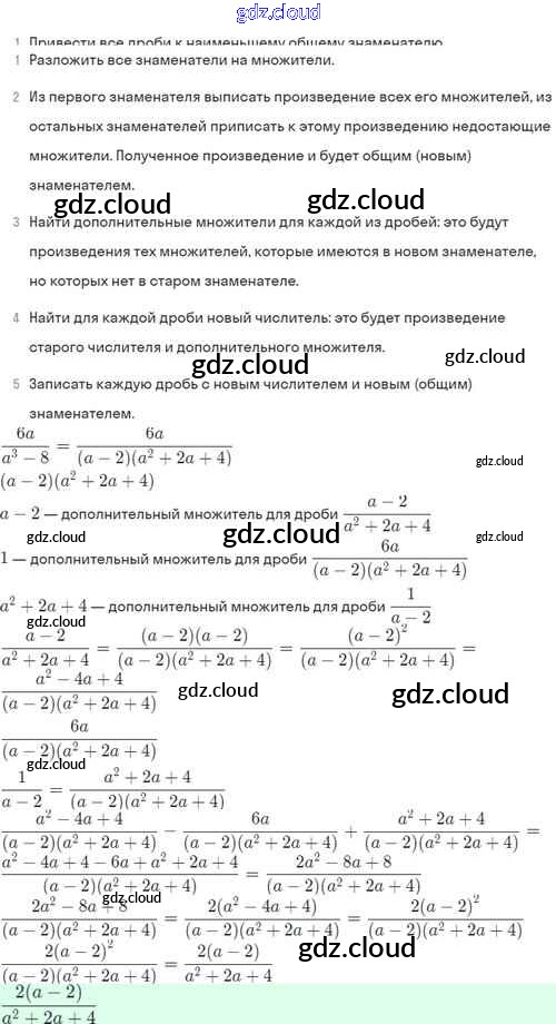 Ответы. §4. Сложение и вычитание алгебраических дробей с разными знаменателями по Алгебре 8 класс Задачник Мордкович Базовый уровень Часть 2 Мнемозина