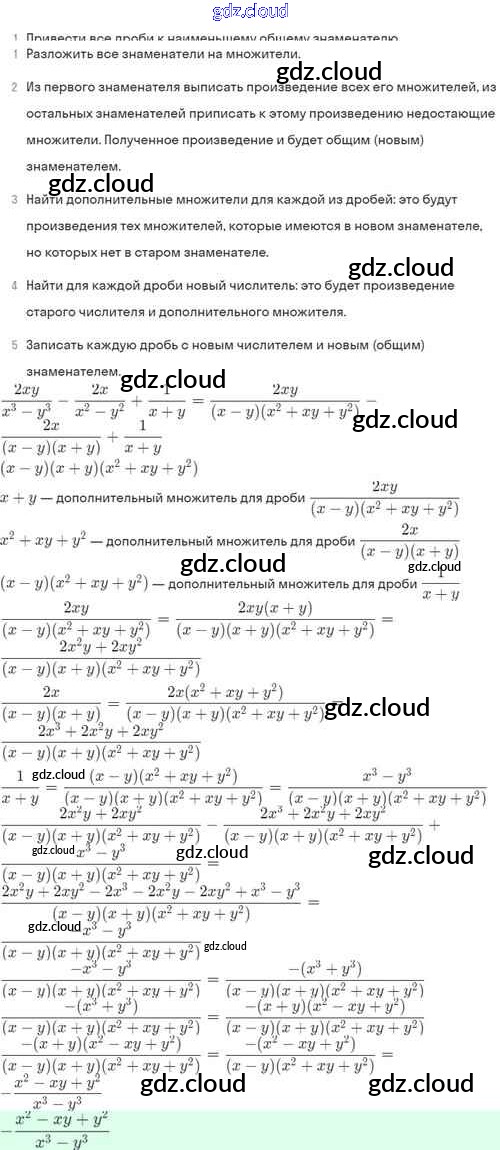 Ответы. §4. Сложение и вычитание алгебраических дробей с разными знаменателями по Алгебре 8 класс Задачник Мордкович Базовый уровень Часть 2 Мнемозина