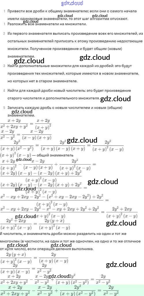 Ответы. §4. Сложение и вычитание алгебраических дробей с разными знаменателями по Алгебре 8 класс Задачник Мордкович Базовый уровень Часть 2 Мнемозина