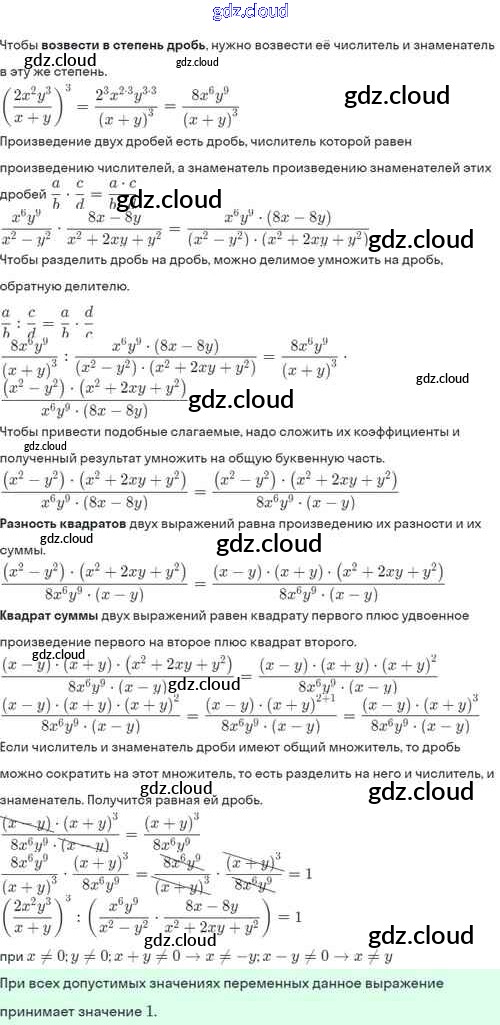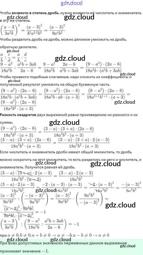 Ответы. §5. Умножение и деление алгебраических дробей. Возведение алгебраической дроби в степень по Алгебре 8 класс Задачник Мордкович Базовый уровень Часть 2 Мнемозина