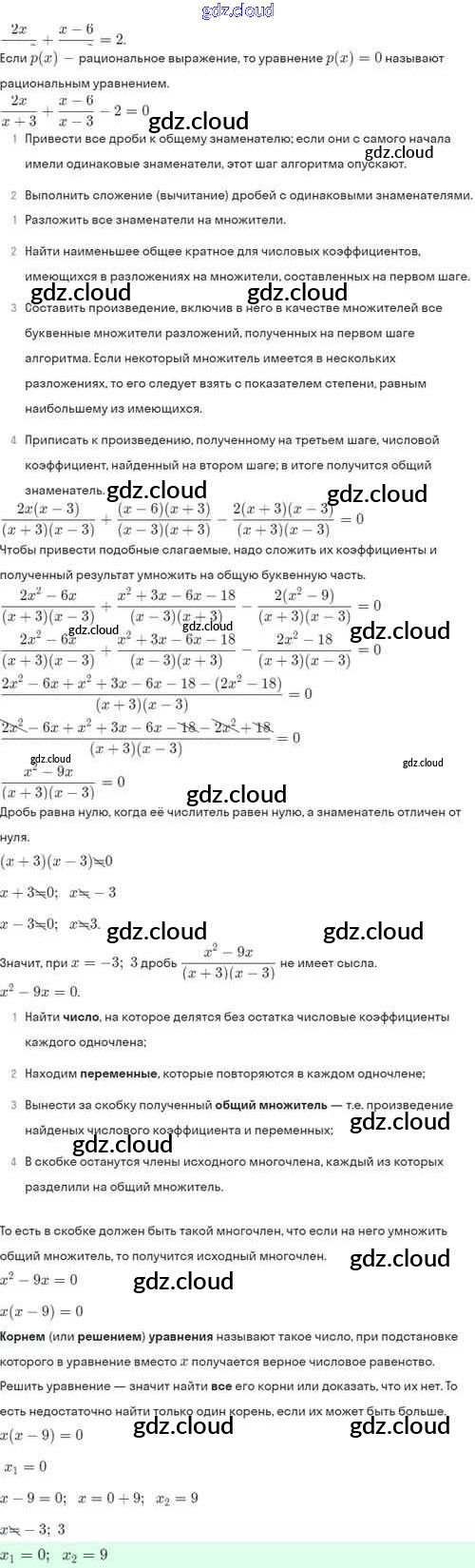 Ответы. §7. Первые представления о рациональных уравнениях по Алгебре 8 класс Задачник Мордкович Базовый уровень Часть 2 Мнемозина