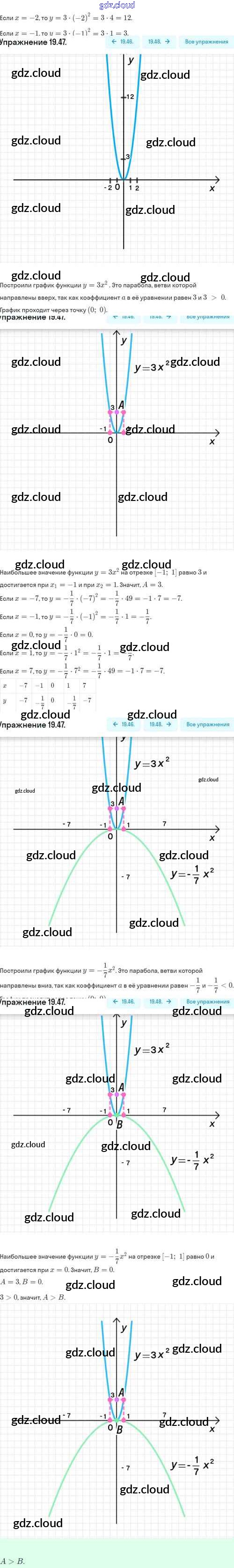 Ответы. §19. Функция y=kx², её свойства и график по Алгебре 8 класс Задачник Мордкович Базовый уровень Часть 2 Мнемозина