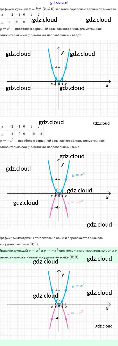 Ответы. §19. Функция y=kx², её свойства и график по Алгебре 8 класс Задачник Мордкович Базовый уровень Часть 2 Мнемозина