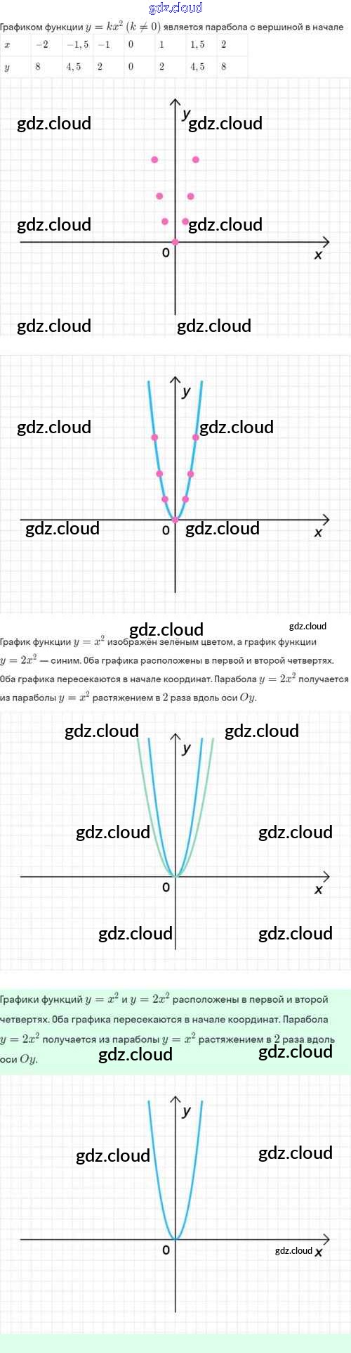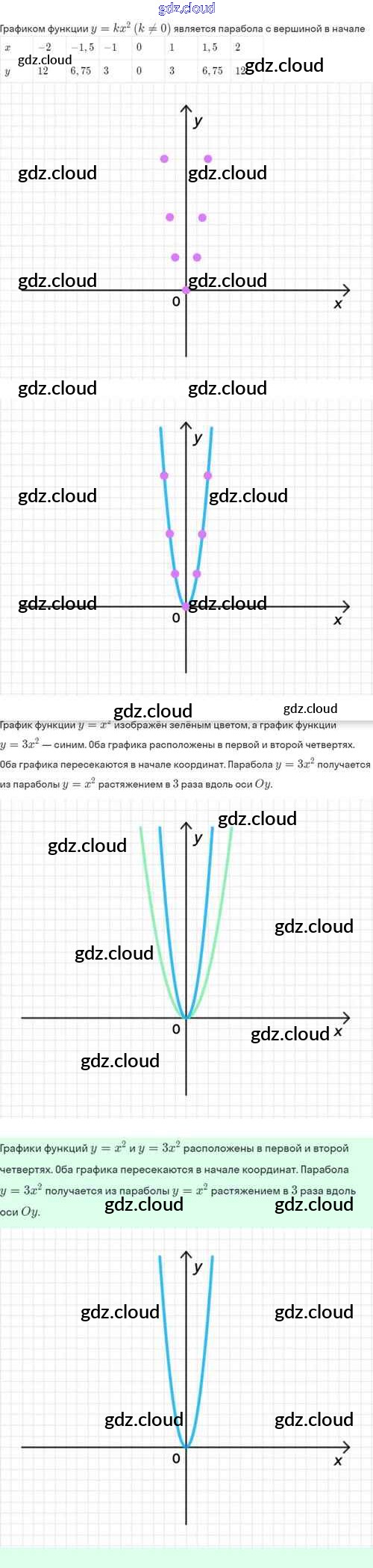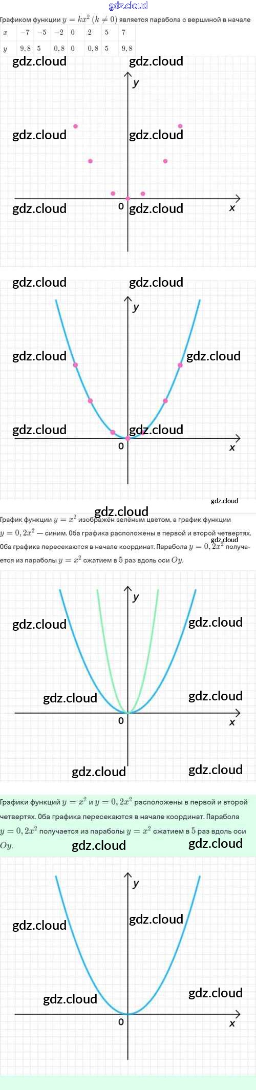Ответы. §19. Функция y=kx², её свойства и график по Алгебре 8 класс Задачник Мордкович Базовый уровень Часть 2 Мнемозина
