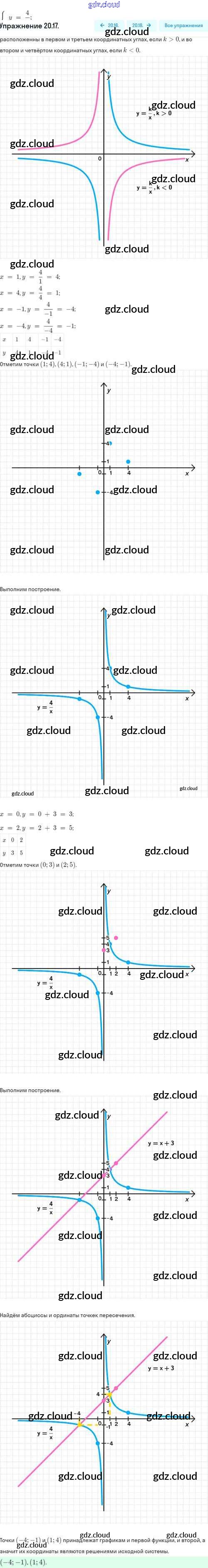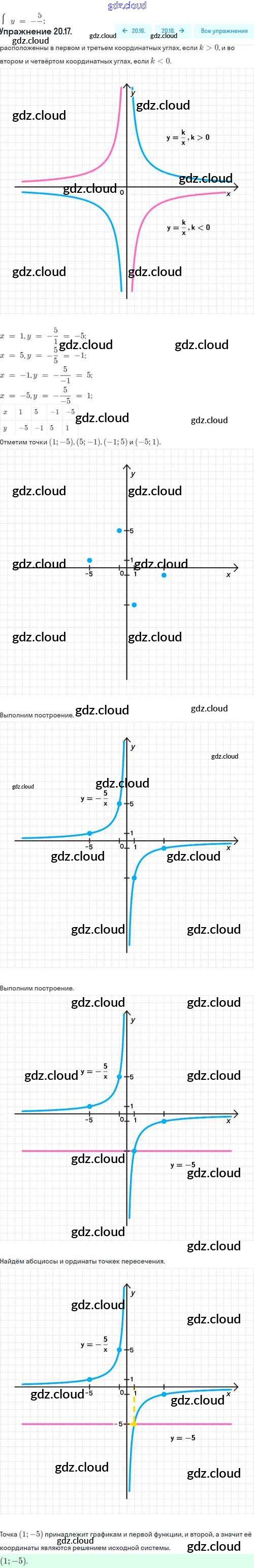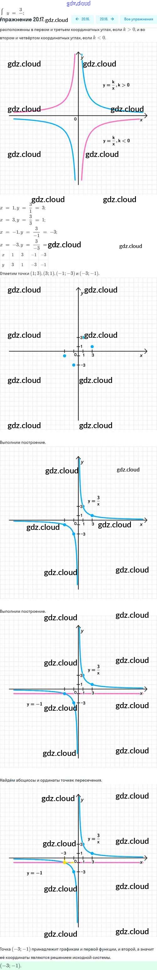 Ответы. §20. Функция y=k/x, её свойства и график по Алгебре 8 класс Задачник Мордкович Базовый уровень Часть 2 Мнемозина