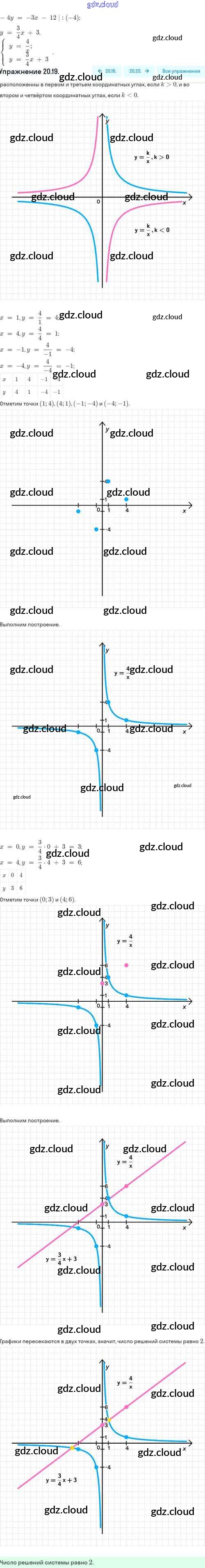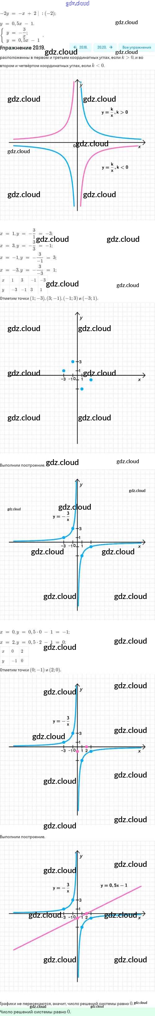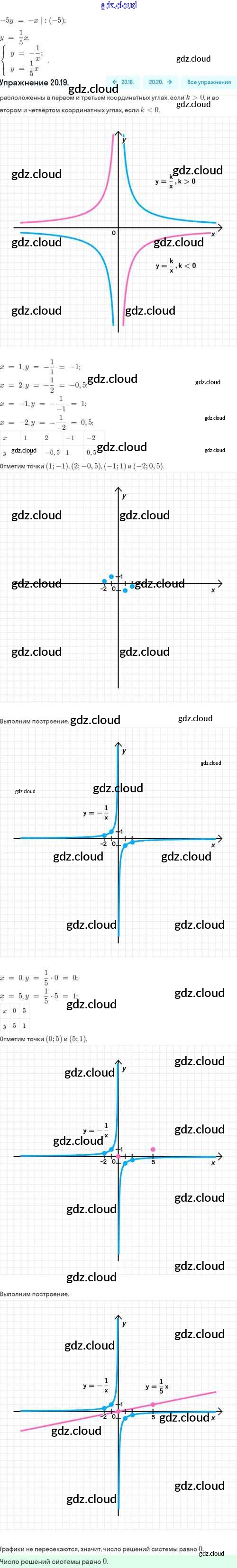 Ответы. §20. Функция y=k/x, её свойства и график по Алгебре 8 класс Задачник Мордкович Базовый уровень Часть 2 Мнемозина